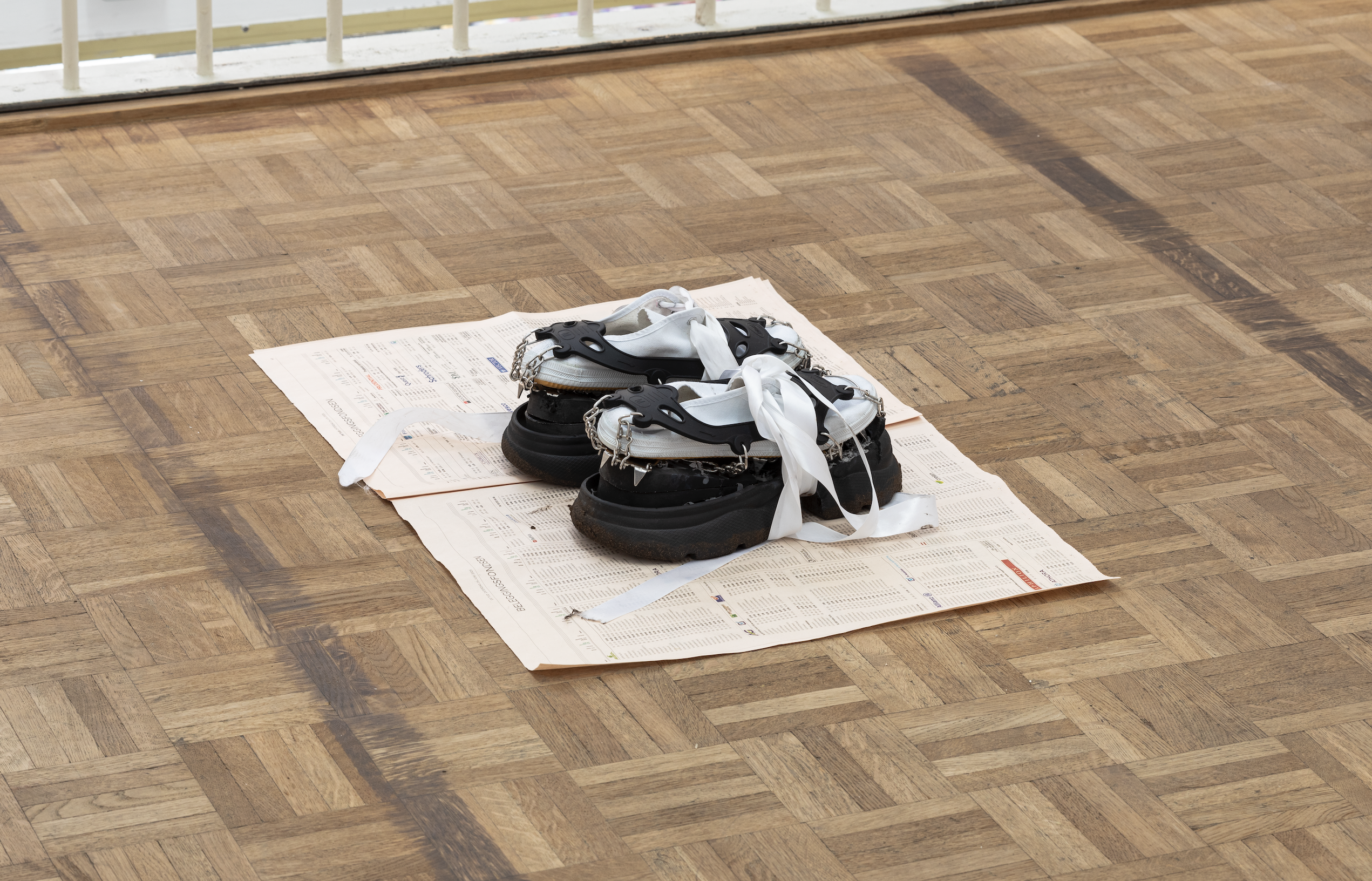 The project begins with Yezi’s invitation from artist collective Display Distribute to take on the role of a “slow courier.” Wearing a pair of specially made shoes, she carried two bottles of China-produced Hoegaarden beer to a project space in Belgium. These shoes, handmade within China’s manufacturing networks, feature inverted soles—a trick swapping the heel and sole to mislead customs officers—historically used along the Belgium–Netherlands border so authorities would follow smugglers’ tracks in the wrong direction. During the journey of delivery, there were many accidents that went beyond what was originally planned. Yezi was once warned not to shoot. In doing so, the project recalls historical tales of smuggling shoes but also revealing the contradictions of production, identity, and circulation in the networked present.